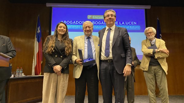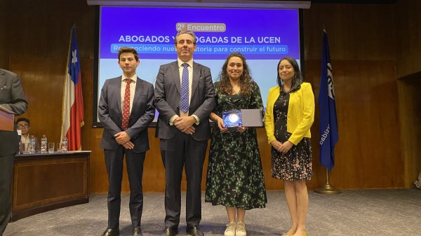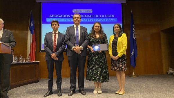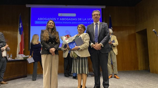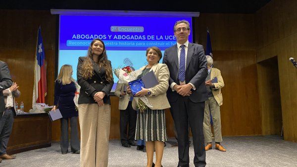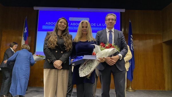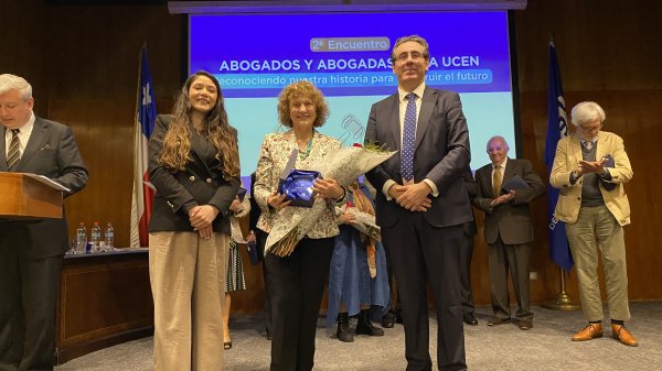 En la ceremonia se entregó el Premio Abogada Destacada en el Sector Privado a la exalumna María Fernanda Juppet Ewing, CEO de Cryptomarket en reconocimiento a su liderazgo y visión en la industria Fintech. En el área del Derecho Público se valoró el aporte de Lilian Leyton Varela, Ministra de la Corte de Apelaciones de Santiago. Ambas debieron ausentarse, pero Fernanda envió unas palabras desde Europa, calificando el reconocimiento como un logro colectivo, instando a los y las asistentes a seguir cambiando el mundo “una locura a la vez”.