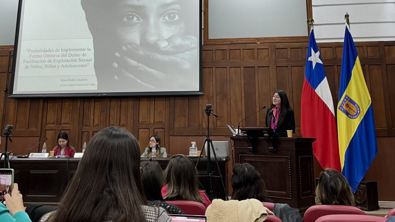 Un importante logro tuvo la estudiante de quinto año de Derecho Santiago, Kiara Mella Caballero, quien expuso su tesina "Posibilidades de implementar la forma omisiva del delito de explotación sexual de menores" en las VI Jornadas de Mujeres Penalistas y Criminólogas, desarrolladas el 3 y 4 de agosto en la Universidad de Concepción.
