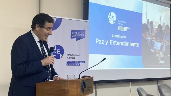 A continuación, el director nacional de Conadi, Álvaro Morales Marileo, destacó la pertinencia académica del análisis: “El Derecho es la regulación de la convivencia social y en la Facultad de Derecho y Humanidades creo que es una temática muy importante de profundizar lo que ofrece el informe de la Comisión Paz y Entendimiento y además poder relevar un mecanismo que hoy día parece estar en retirada, que es el diálogo y acuerdo sobre materias difíciles”. Agregó que “el informe de la Comisión Paz y Entendimiento es una reivindicación de esa forma de diálogo, de convivencia, de hacer política, de hacer sociedad que necesitamos más que nunca” y agradeció “a la Universidad Central por interesarse en esta temática y en la sensibilización social que tenemos que hacer como uno de los elementos centrales en la construcción de una sociedad, es saber quiénes somos”.