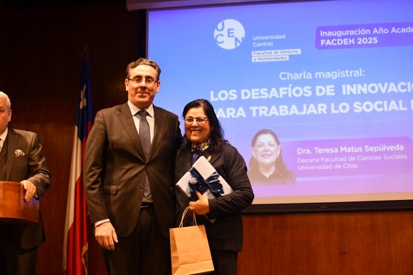Con una Aula Magna Fundadores repleta de estudiantes, docentes e invitados, la Facultad de Derecho y Humanidades de la Universidad Central (FACDEH) inauguró oficialmente su año académico 2025 el miércoles 2 de abril. La jornada contó con la charla magistral “Los desafíos de innovación para trabajar lo social hoy”, a cargo de la trabajadora social y Decana de la Facultad de Ciencias Sociales de la Universidad de Chile, Dra. Teresa Matus Sepúlveda.