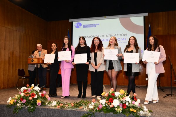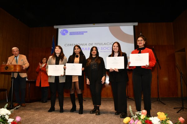 Fueron 39 jóvenes quienes recibieron sus diplomas de término de estudios “El proceso de titulación marca el inicio de la vida profesional de nuestros egresados, en donde deben poner en práctica todo lo aprendido durante sus años de estudios y desafiarse ante los contextos sociales cambiantes y emergentes, incorporando los principios éticos del resguardo de los Derechos Humanos, la justicia social y la integralidad profesional hacia los grupos más vulnerables de la población”, explica la directora de la carrera Judith Guajardo.