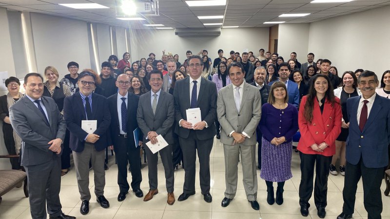Durante el evento, el profesor Talep confesó que demoró tres años en escribir el texto y dedicó la obra a sus estudiantes, reafirmando su compromiso con la enseñanza de calidad: “Me alegro de ver esta sala con estudiantes. Uno cuando abraza la actividad académica, de manera tácita asume un compromiso vital que es colaborar en el instituto en el cual uno se encuentra inmerso, pero también en la sociedad misma de comprometerse con lo mejor que uno tiene y puede dar en pos de que los muchachos que uno proyecta ese mensaje sean un aporte para la sociedad. Y ese trabajo no puede agotarse en simplemente impartir una clase”, explicó.