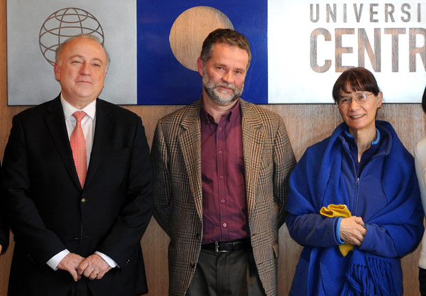 La ceremonia contó con la presencia del rector de la Universidad Central, Santiago González, y la integrante de la Junta Directiva, Eliana Verónica Romo.