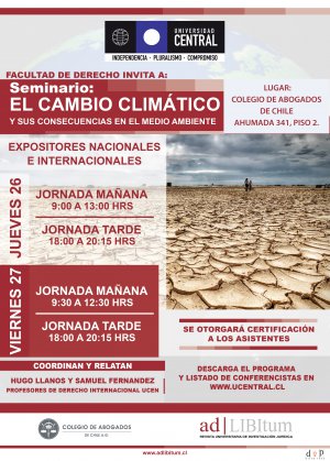 Tomar consciencia sobre la gravedad del cambio climático, así como la necesidad de abordar este problema desde la academia es el objetivo del próximo seminario de la Facultad de Derecho de la Universidad Central de Chile.