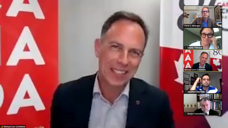 Al igual que en 2020 se realizó una ceremonia de inicio de curso de forma virtual, en la que participó el embajador de Canadá en Chile, Michael Gort, quien destacó que esta instancia “encarna el espíritu de colaboración que existe entre las universidades” chilenas y canadienses, especialmente en el marco de la conmemoración de los 80 años de relación diplomática entre ambos países. “La experiencia que adquieran en este curso los ayudará en sus carreras legales para enfrentarse a los grandes desafíos” que enfrenta el mundo e instó a sus compatriotas a aprovechar estas semanas para conocer más de “una región rica y diversa de la cual van a aprender mucho en este tiempo”.