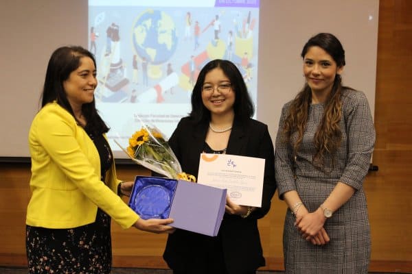 El segundo lugar corespondió para la estudiante de la Universidad Norbert Wiener, Alison Zavaleta, con el tema “Impacto del matrimonio igualitario y las acciones de garantía como vía de regulación de la Constitución peruana, 2022”; y el tecero para y Tatiana Barrios de la Torre, de la Universidad del Atlántico con su investigación “Análisis de la normativa para accesibilidad urbana de personas en condición de discapacidad. Barranquilla 2016-2019.”, respectivamente. Ambas recibieron sus diplomas de la directora de la Escuela de Derecho y Trabajo Social, Catalina Novoa, y de la directora de la carrera de Derecho, Maite Arauco.