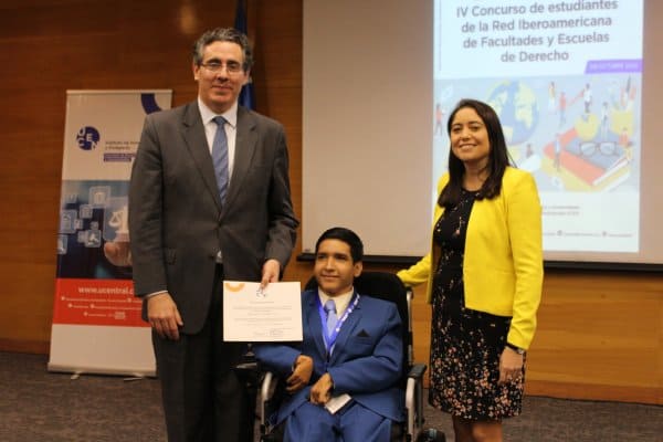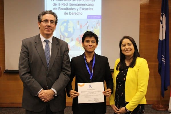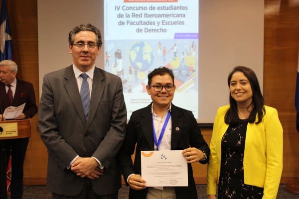 Luego de una intensa semana de presentación de proyectos de investigación, Juan Carlos Valladolid, estudiante de la Universidad San Gregorio de Portoviejo obtuvo el primer lugar del IV Concurso de Estudiantes de la Red Iberoamericana de Facultades y Escuelas de Derecho, con el tema “Automatización de la justicia: ¿puede un algoritmo reemplazar a un juez?”. Recibió el reconocimiento de manos del Vicerrector Académico de la Universidad Central de Chile, Emilio Oñate, y del Decano de la Facultad de Derecho y Humanidades, Rafael Pastor.