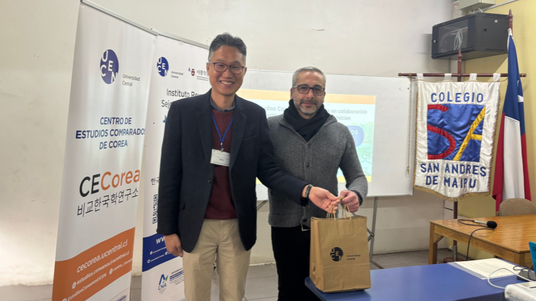 Finalmente, el Dr. Soonbae Kim, director de CECorea, obsequió ejemplares de la colección publicada del Centro “Corea desde América Latina” y también libros del Instituto Rey Sejong para el aprendizaje del idioma coreano. Los libros fueron recibidos por Juan Carlos González, coordinador académico del Colegio San Andrés Maipú.