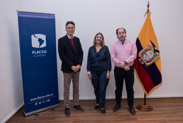 El pasado 26 y 27 de junio se llevó a cabo el seminario “Relaciones internacionales, cooperación y poder blanco: el caso de Corea del Sur” organizado por el Centro Asia de la Facultad Latinoamericana de Ciencias Sociales (FLACSO) de Ecuador. El director del Centro de Estudios Comparados de Corea (CECorea), Dr. Soonbae Kim, y la coordinadora académica del centro, doctoranda Janice Tapia Silva, fueron invitados a exponer en la mesa “Soft Power” del evento.