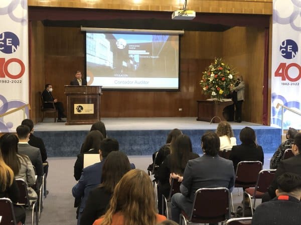 La carrera de Contador Auditor de la UCEN entregó sus títulos profesionales a los nuevos egresados y egresadas en un acto llevado a cabo en el Aula Magna Fundadores de esta casa de estudios, y que fue encabezado por las autoridades de la Facultad de Economía, Gobierno y Comunicaciones, presididas por el decano Prof. Luis Riveros Cornejo.