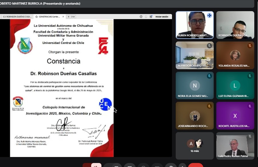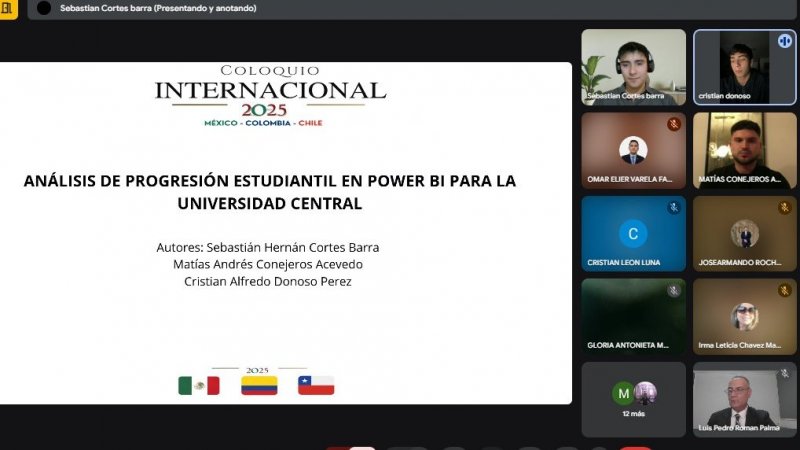 La Universidad Central de Chile tuvo una participación destacada en el V Coloquio Internacional de Investigación, un encuentro académico de alto nivel realizado de forma remota, que conectó a la Universidad Autónoma de Chihuahua (México), la Universidad Militar Nueva Granada (Colombia) y nuestra casa de estudios. El evento reunió un total de 53 ponencias, presentadas por estudiantes e investigadores de pregrado, maestría y doctorado.