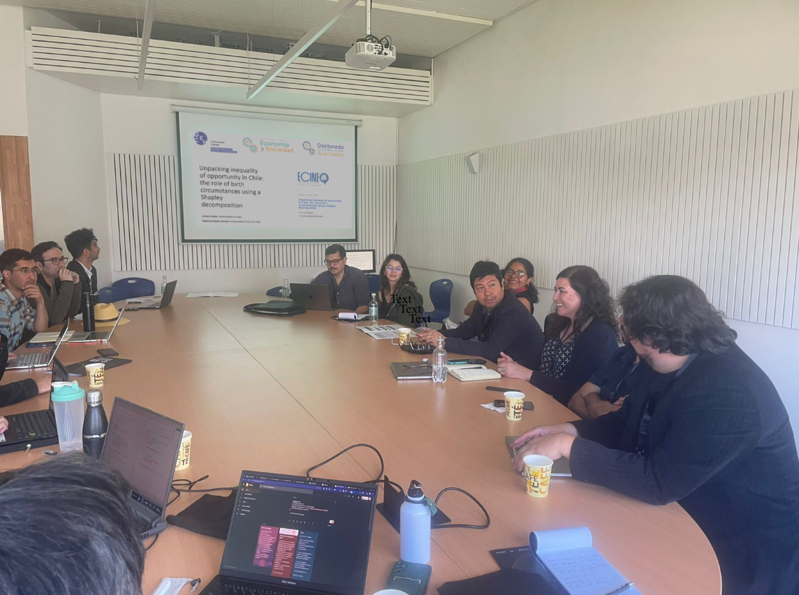 Por su parte, Gabriela Zapata participó en la mesa “Desigualdad Económica” con el estudio Unpacking inequality of opportunity in Chile: the role of birth circumstances using a Shapley decomposition. Su investigación, desarrollada junto a Carlos Gradín de la Universidad de Vigo, explora cómo las circunstancias de nacimiento impactan en la desigualdad de oportunidades en el mercado laboral chileno entre 2009 y 2022.