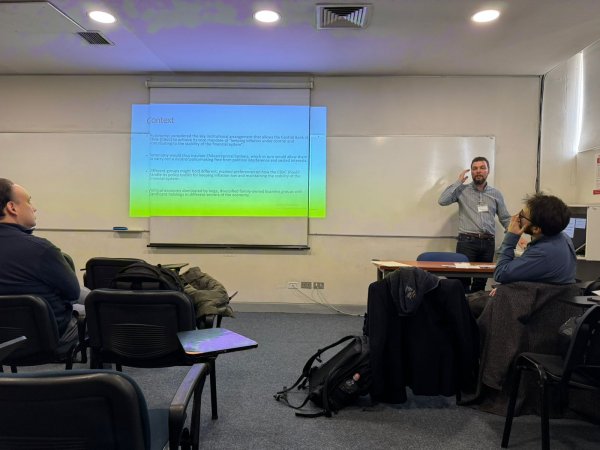 Los proyectos presentados fueron: el Fondecyt Regular 1231356, liderado por el profesor Alfredo Joignant (UDP), que estudia las gramáticas y dispositivos de producción de “estabilidad” económica; el Fondecyt de Iniciación 11240730, a cargo del profesor Ignacio Schiappacasse (UCEN), que examina las redes de élite en la toma de decisiones del Banco Central; y el proyecto de la profesora Paula Ahumada (U. de Chile), que analiza las transformaciones jurídicas del organismo.