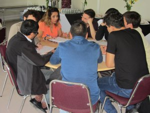 Reunidos en diversas mesas de trabajo, estudiantes y microempresarios de los más diversos rubros, interactuaron libremente con el fin de retroalimentarse mutuamente respecto de problemas y soluciones para mejorar el desarrollo de sus negocios.