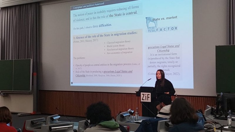 La Dra. Neida Colmenares, investigadora del Centro de Investigación Socio Jurídica, Criminología y Ética (CISCE) de la Universidad Central de Chile, fue una de las académicas latinoamericanas invitadas a participar en el evento. Durante su intervención, presentó la conferencia “Migration Policy and Peace? Perspectives from Latin America [Chile]. In the context of the Venezuelan human mobility crisis”, en la que expuso los primeros resultados de su investigación Fondecyt de Iniciación, titulada “Huella Migrante. Respuestas Estatales hacia la migración venezolana en Colombia, Ecuador y Chile: Políticas y desafíos de integración”.