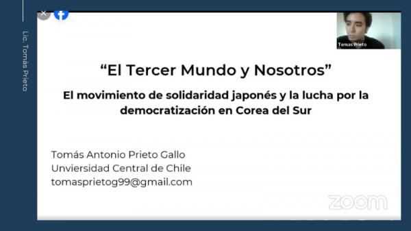 El día viernes 6 de octubre, Lic. Tomás Prieto, estudiante de la cohorte 2023 del Magíster en Estudios Coreanos, expuso la ponencia “El tercer mundo y nosotros”: el Movimiento de Solidaridad Japonés y la lucha por la democratización en Corea del Sur en la mesa 3. Memorias del autoritarismo en Corea del Sur: entre movimientos sociales y represión. Y en la última mesa de la jornada, mesa 4. Transculturalidad: identidades y escenarios en Corea del Sur, Mtr. Valentina Figueroa, titulada del Magíster en Estudios Coreanos y coordinadora de proyectos del CECorea, presentó la ponencia “La significación y su rol especular en la relación individuo/sociedad en la Transculturalidad: caso de chilenas en Corea del Sur.