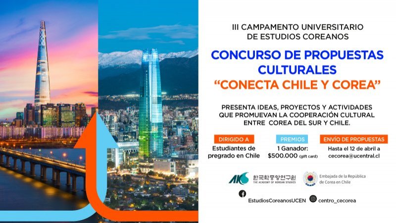 El Centro de Estudios Comparados de Corea (CECorea), de la Facultad de Economía, Gobierno y Comunicaciones de la UCEN, convoca a estudiantes de pregrado en Chile, de universidades o institutos técnico/profesionales, a participar en un concurso nacional de propuestas culturales.