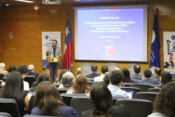 El pasado viernes 8 de noviembre se llevó a cabo el conversatorio "Reforma al sistema de créditos en Chile. Cambios e impactos en la educación superior", un espacio de análisis y diálogo que reunió a destacados actores del sector en el auditorio Carlos Blin del edificio Vicente Kovacevic II de la Universidad Central. La actividad contó con la participación del subsecretario de Educación Superior, Víctor Orellana, quien presentó los principales puntos del Fondo de Educación Superior (FES), la nueva propuesta de financiamiento público impulsada por el gobierno, un modelo que busca reemplazar los actuales créditos estudiantiles con un sistema sostenible y libre de endeudamiento, en beneficio de miles de estudiantes y sus familias.