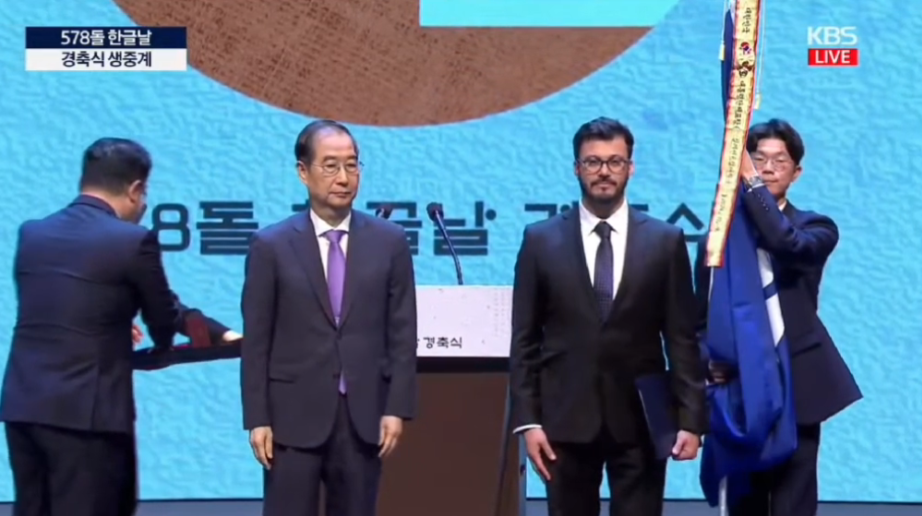 En el marco de la ceremonia conmemorativa del Día del Hangeul (alfabeto coreano) 2024, realizada este miércoles 9 de octubre en Seúl, el Primer Ministro de la República de Corea entregó un importante galardón a la Universidad Central, se trata del "Presidential Citation (대통령 표창)", que reconoce el aporte de nuestra Casa de Estudios al desarrollo de los estudios coreanos, la promoción del idioma y la difusión de la cultura coreana.