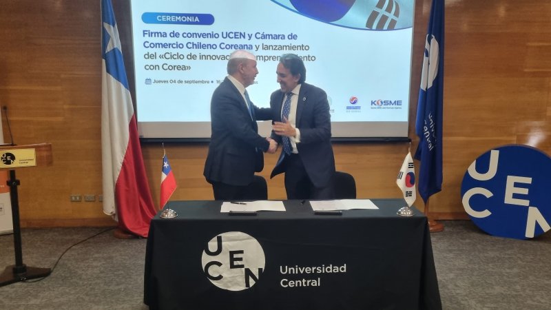 La firma del convenio fue el punto de partida para el Ciclo de Innovación y Emprendimiento con Corea, una iniciativa conjunta de la Facultad de Economía, Gobierno y Comunicaciones y la Vicerrectoría de Investigación, Innovación y Postgrado de la Universidad Central, con la Cámara de Comercio Chileno-Coreana y la agencia gubernamental KOSME como coorganizadores.