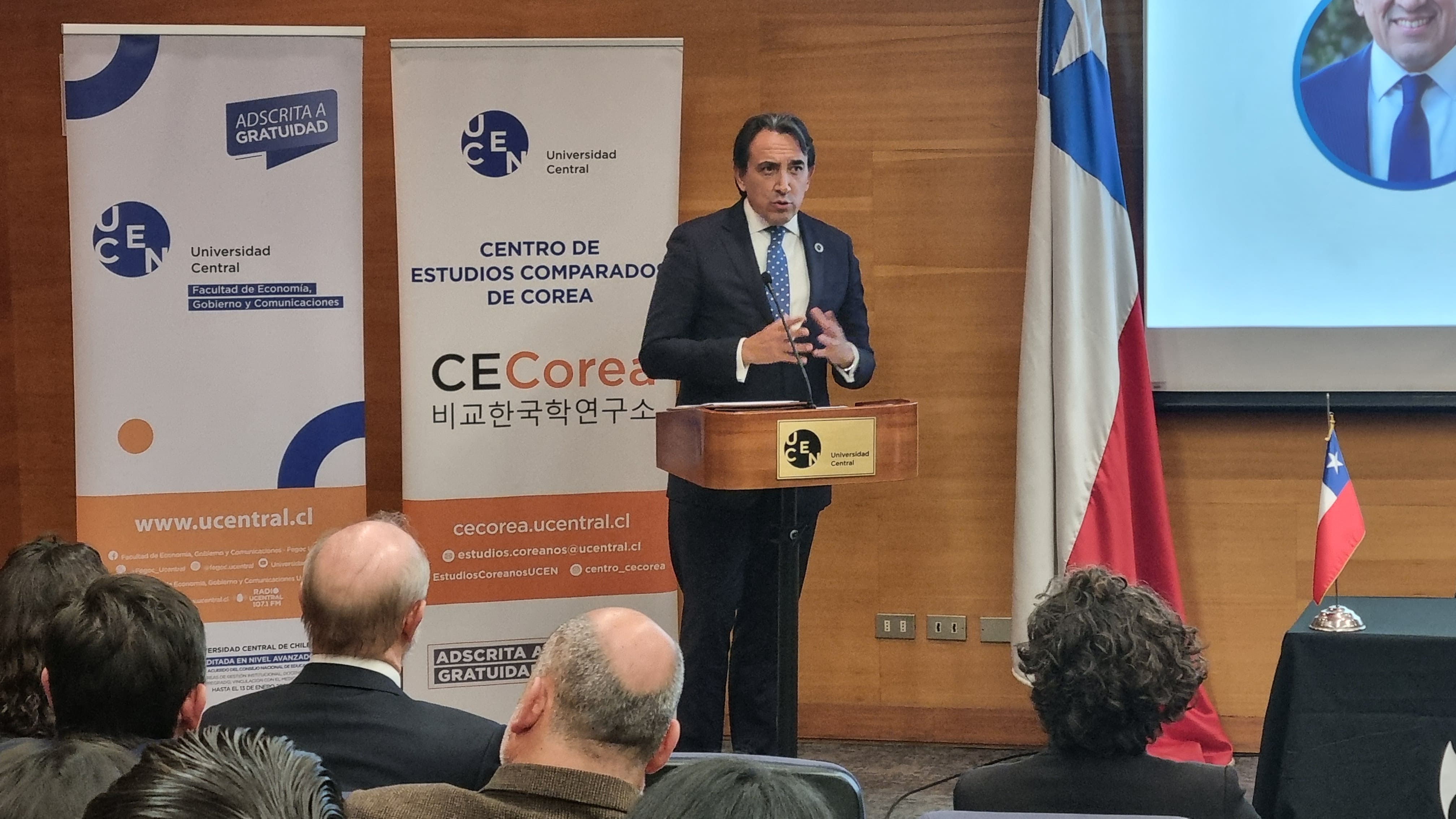 Durante la ceremonia, el vicerrector Emilio Oñate Vera destacó la profunda y duradera relación entre Chile y Corea, resaltando que la Universidad Central ha sido una institución pionera en la promoción de los estudios coreanos en el país.