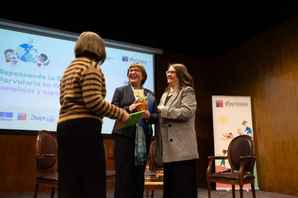 Junto a ello, la directora ejecutiva de Fundación Integra, Nataly Rojas Seguel, recordó que la Carta de Navegación 2022-2026 de la institución –nacida un diálogo participativo–, permitiría por ejemplo responder al llamado que realiza Unesco: “Uno de nuestros ejes principales es transitar hacia el cambio de paradigma educativo, así como seguir promoviendo los derechos y bienestar de niños y niñas, avanzando en una educación integral, contextualizada, que responda a sus necesidades y permita avanzar en la construcción de una nueva comprensión de la niñez, fortaleciendo su rol como sujetos de derecho y como agentes activos de su aprendizaje. Sujetos que, tanto en el presente como en el futuro, son las y los protagonistas de los cambios que debemos instalar”.