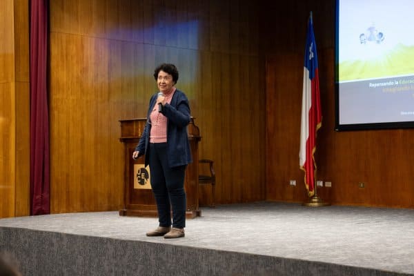 María Victoria Peralta, quien también es directora del Instituto Internacional de Educación Infantil de la Universidad Central, cerró el seminario “Repensando la Educación Parvularia en tiempos complejos y esperanzadores”, con una exposición que convocó a las y los asistentes a integrar los distintos saberes y haceres existentes para buscar una educación más humanista y sostenible.