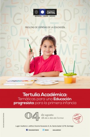 El Instituto Internacional de Educación Infantil (IIDEI) de la Universidad Central de Chile junto a la Dirección de Postgrados y su Diplomado de Especialización en Pedagogía para la Primera Infancia, realizará la tertulia académica "Temáticas para una Educación Progresista para la primera infancia" con el objetivo de compartir y discutir en detalle lo expuesto en el útlimo congreso internacional "la utopía es posible" realizado en Barcelona, España.