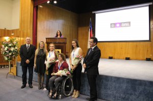 Carina Caram (29 años), capitana del Team Chile y de la selección de hockey césped; Eliana Busch (83 años), campeona nacional y sudamericana de natación y Francisca Mardones (41 años), atleta y tenista profesional paralímpica. En representación de ellas, Mardones dedicó sentidas palabras a los asistentes. "No solamente necesitamos buenas leyes o buenos premios que son importantes para los deportistas, también necesitamos que crean en nosotros. Ustedes, que serán los futuros entrenadores es importante que reconozcan lo que un deportista está pensando y siente, es una relación que se construye día a día y finalmente ustedes van a ser los artífices de todos los resultados deportivos que pueda entregar este país".