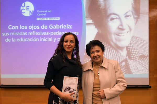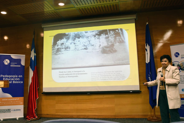 En el auditorio Carlos Blin Arriagada de la Universidad Central de Chile (UCEN) se realizó el pasado jueves 29 de mayo el conversatorio «Con los Ojos de Gabriela: Sus Miradas Reflexivas-Pedagógicas de la Educación Inicial y Primaria», actividad organizada por la Facultad de Educación (FED) y moderada por la profesora Lucía Godoy, fundadora del Museo del Instituto Pedagógico «Valentín Letelier» de la Universidad Metropolitana de Ciencias de la Educación (UMCE). La instancia contó con la participación de la decana de la FED, Andrea Figueroa, quien dio la bienvenida a las panelistas.