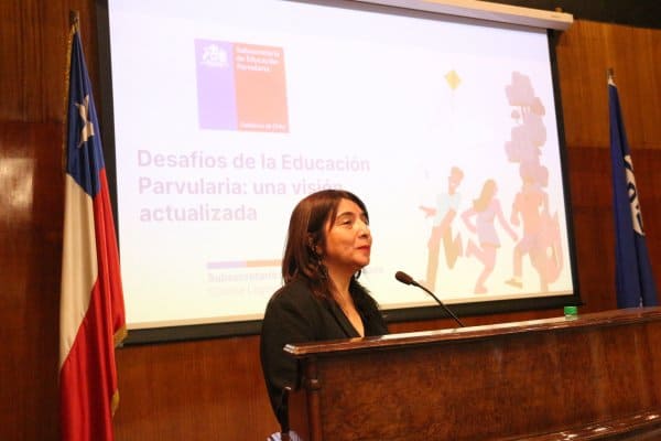 La clase magistral preparada por la Subsecretaria, estuvo particularmente dirigida a las estudiantes de la carrera a quien les dijo “Están en un momento muy desafiante en sus vidas, momento de enfrentar los desafíos educativos, encontrar una identidad profesional o desde donde uno se para para ejercer esta hermosa profesión”. La presentación, comenzó con un análisis de la situación actual y el contexto en el que se desarrolla la educación parvularia para poder entender lo que denomina “el cambio de paradigma para la Educación Parvularia”, el que aclara “no comienza con este Gobierno, ni termina con él, son las nueva formas de participación, de ejercer la labor profesional con nuevas formas también de ejercer relación y acompañamiento de los niveles intermedios y cómo las políticas regulatorias han entendido cómo se puede facilitar la innovación pedagógica”.