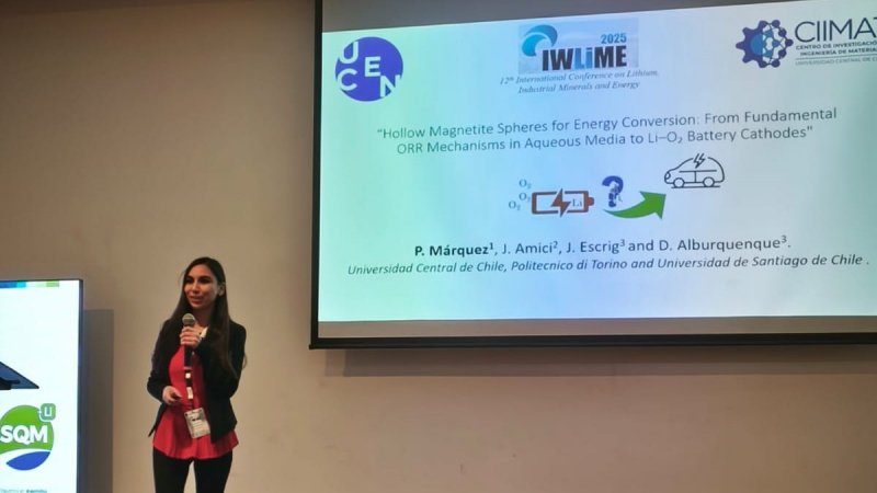 La investigadora de la Universidad Central de Chile, presentó los resultados de su trabajo en el diseño de materiales nanoestructurados para sistemas de almacenamiento de energía durante el IWLiME 2025, encuentro que reunió a expertos del “triángulo del litio”.