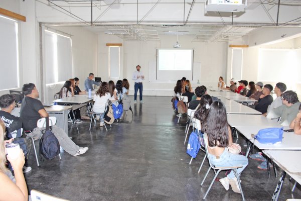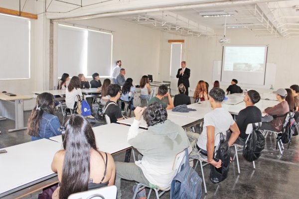 Fue en ese sentido que, en primera instancia y en la nueva sala 400, el nuevo grupo fue recibido por el decano de la Facultad de Ingeniería y Arquitectura, Uwe Rohwedder, el director de carrera, Ricardo Riveros, el cuerpo docente e incluso egresados y egresadas de la carrera, quienes comentaron la línea de estudio, las disciplinas con las que se trabaja, el campo laboral a futuro, las iniciativas de ex estudiantes, entre otros.