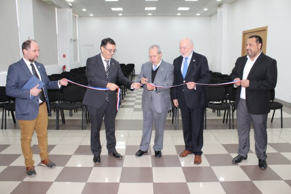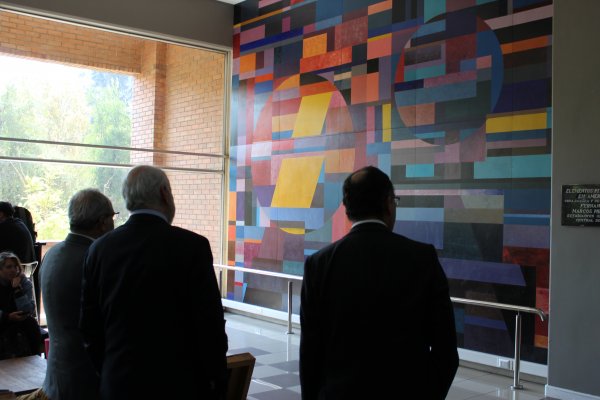 Por último, los representantes institucionales guiados por los de Facultad, avanzaron al primer piso, donde luego de apreciar el mural “Elementos Pitagóricos en América”, obra aportada a nuestra universidad por el destacado muralista nacional don Fernando Marcos Miranda, restaurado durante los trabajos de mantenimiento realizados en verano, se dirigieron al nuevo Auditorio del edificio que cuenta con nuevos recursos de iluminación, TIC, audio, mobiliario, cortinaje blackout y otras mejoras estructurales. Fue aquí donde se realizó el corte de cinta que formalizó la inauguración de esta actualización de la infraestructura.