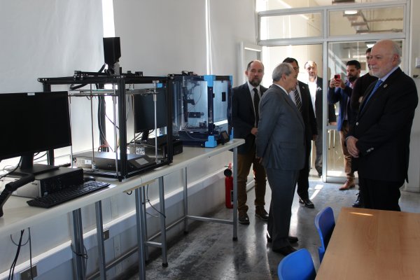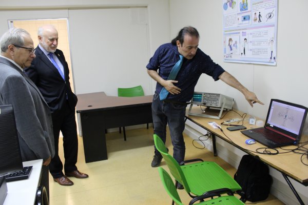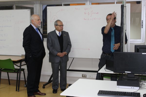 Las autoridades llegaron en primera instancia hasta el Laboratorio Inteligencia Artificial, ubicado entre los pisos -2 y 1, donde pudieron interiorizarse de la actividad que desarrollan en el área los docentes y estudiantes de la carrera de Ingeniería Civil en Computación e Informática, así como del equipamiento computacional utilizado.