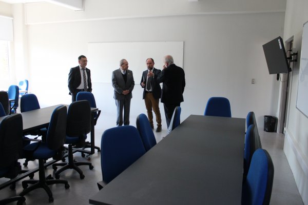 Es en ese marco que el Decano, Dr. Cristian Millán Fuentes y el Secretario de Facultad, Rodrigo Ramírez Tagle, recibieron al Presidente de la Junta Directiva de la Universidad Central, Dr. Patricio Silva Rojas y al Rector don Santiago González Larraín, para recorrer juntos los remozados lugares.