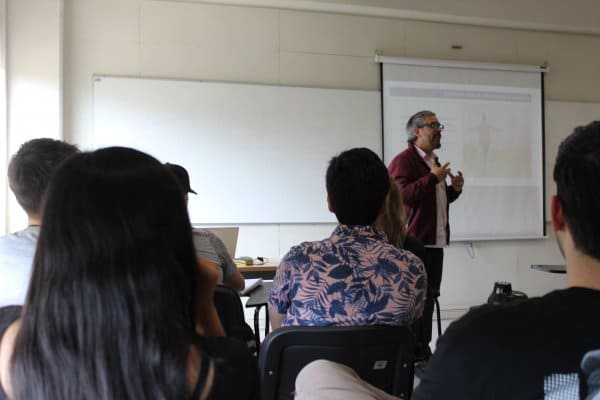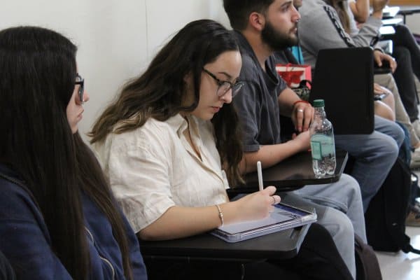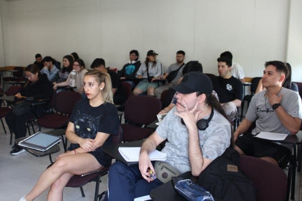 Alumnas y alumnos de la Finarq, interesados en el tema, fueron parte del "Taller de Inserción Laboral" organizado por la coordinación de VCM de la Facultad y dictado por Samuel Rojas.