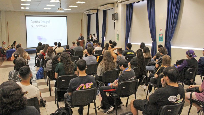Con un auditorio repleto se realizó el Seminario "Desarrollo e Innovación de PYMES enfocadas en sostenibilidad digital" en el edificio VKI, donde un grupo de estudiantes de la carrera de Ingeniería Civil Industrial cerró, con esta actividad, la asignatura VCM "Taller de Integración de Competencias Intermedias".