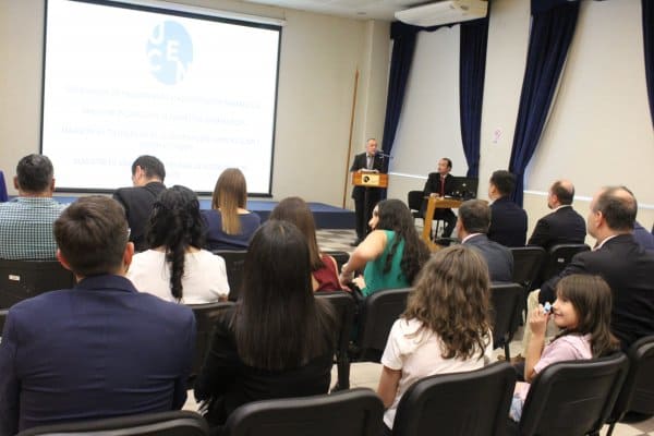 La ceremonia estuvo conducida por el director de esos programas, profesor Alejandro Sanhueza, quien a su vez estuvo acompañado por el Secretario de Facultad, Rodrigo Ramírez y parte del plantel de docentes representados en Samira Khazmou, Rodolfo Canelón y Hernán Olmí.