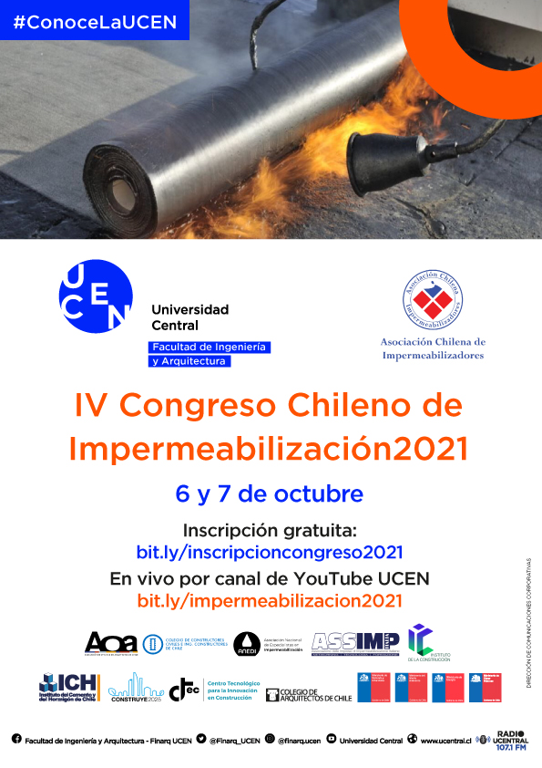 Ya esta abierta la convocatoria para participar los días 6 y 7 de octubre de 2021, en la cuarta versión del encuentro que desde 2015 es organizado en conjunto por las carreras de Ingeniería Civil en Obras Civiles, Ingeniería en Construcción de la UCEN y la Asociación Chilena de Impermeabilizadores (ASIMP A.G.).