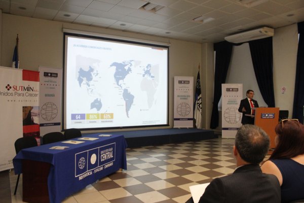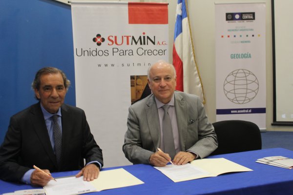 Con una charla magistral, sobre las perspectivas y desafíos futuros de la minería, se contextualizó el encuentro que formalizó la alianza entre la Universidad Central (UCEN) y la Asociación Gremial de Suministradores Técnicos y de Ingeniería para la Minería e Industria (Sutmin A.G.), a través de un convenio marco de colaboración mutua, suscrito por los máximos representantes de ambas instituciones: Santiago González, rector de esta casa de estudios y Sergio Lecannelier, presidente del directorio de la agrupación gremial.