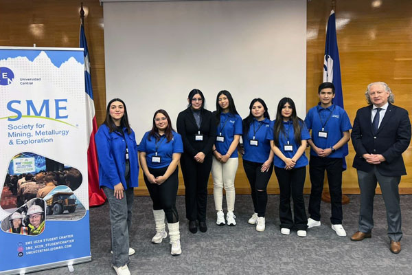 Con el propósito de enriquecer su formación profesional y promover el liderazgo estudiantil, la carrera de Ingeniería Civil en Minas de la Facultad de Ingeniería y Arquitectura (Finarq) presentó, el pasado miércoles 2 de julio, el primer Student Chapter de la Society for Mining, Metallurgy & Exploration (SME), organización internacional de referencia en minería, metalurgia y exploración. Esta nueva organización estudiantil fue oficializada gracias al respaldo de los fondos concursables de la Dirección de Apoyo a la Vida Estudiantil (DAVE) y representa un hito para la Universidad Central de Chile (UCEN), al consolidar un espacio destinado a actividades técnicas, vinculación con la industria y participación en redes globales que amplían la experiencia académica y potencian el perfil profesional de sus integrantes.