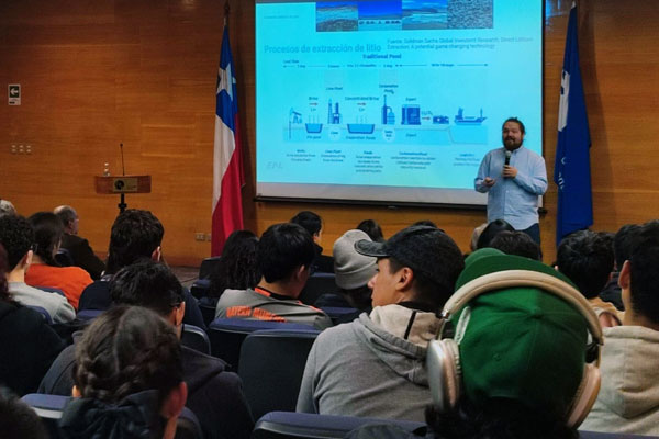 Como parte del programa, el ingeniero civil químico Santiago Oliva, especialista en nuevas tecnologías de extracción de litio en la Empresa Nacional de Minería (Enami), dictó la charla titulada «Desafíos y diseño en tecnologías de extracción de litio». Su presentación abordó los retos tecnológicos, ambientales y económicos que plantea este recurso estratégico para la transición energética global, destacando el rol fundamental de Chile en este ámbito.