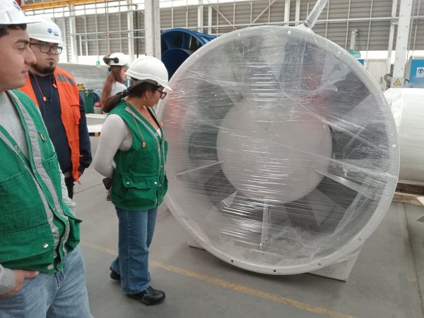 Durante la jornada, el grupo exploró el proceso completo de fabricación de ventiladores, desde el diseño hasta el ensamblaje y visitaron la sala de pruebas, donde se efectúan ensayos para garantizar el rendimiento óptimo de los equipos. Además, tuvieron la oportunidad de observar en terreno el funcionamiento de los ventiladores mineros, conectando los conceptos aprendidos en clases con aplicaciones prácticas en un contexto industrial real.