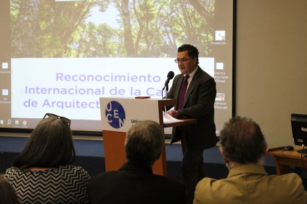 En ese contexto, el Rector de la U. Central, Santiago González, fue el primero que se dirigió a los y las presentes para asegurar que este reconocimiento internacional porque "es una carrera que mira al futuro. Todos los problemas de cambio climático, de crisis hídrica, tienen que ver con la mirada que se ve desde la Arquitectura del Paisaje. Cómo construimos espacios que sean adecuados para el medio ambiente y la convivencia del ser humano".