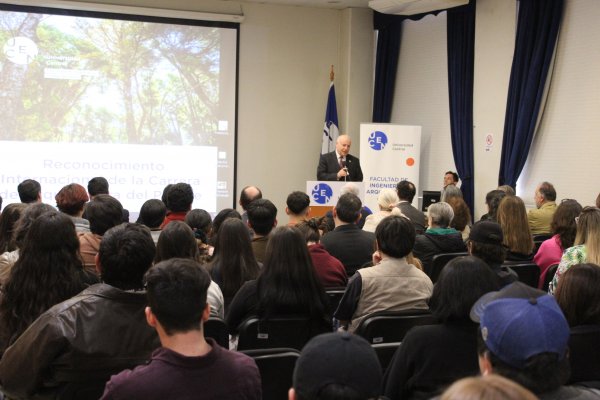 Cuestión celebrada en un lleno Auditorio del Edificio VKI, a la que asistieron autoridades, directivos, docentes y estudiantes, con el objetivo de destacar este hito de la Facultad de Ingeniería y Arquitectura, de la Escuela de Arquitectura y Paisaje, y de la Universidad.