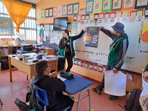 Estos últimos llegaron para enseñar en la escuelita sobre paleontología, mostrándoles afiches sobre el ciclo de agua y el ciclo de la roca, los colores de los minerales, entre otros. Además se les regaló una maqueta 3D creada con curvas de nivel sobre los cerros de Renca y un tríptico donado por la carrera de Arquitectura del Paisaje con una alegoría del cóndor y las araucarias. También se donaron libros de estudio.