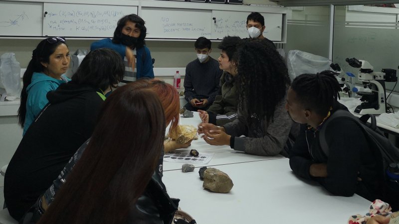 La visita estuvo guiada por la académica Regina Toloza y también estudiantes de las carreras lo que enriqueció esta importante actividad de Vinculación con el Medio. Los alumnos de ingeniería Civil en Minas explicaron la importancia a de conocer la roca en actividad de perforación de macizo rocoso y en tronaduras, y la preocupación actual sobre la sustentabilidad. Mientras el alumno de Geología explicaba de qué mineral se trataban las muestra en sus manos.