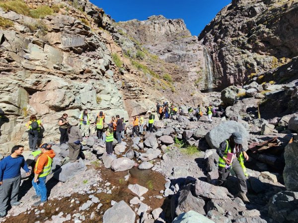 65 estudiantes viajaron, acompañados de parte del cuerpo docente de la carrera, hasta la quebrada Las Amarillas en el Cajón del Maipo.