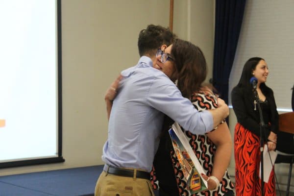 Los y las alumnas, cada quien con su rol dentro de la organización, agradecieron el compromiso y participación de Ángela Morales entregándole dos presentes.
